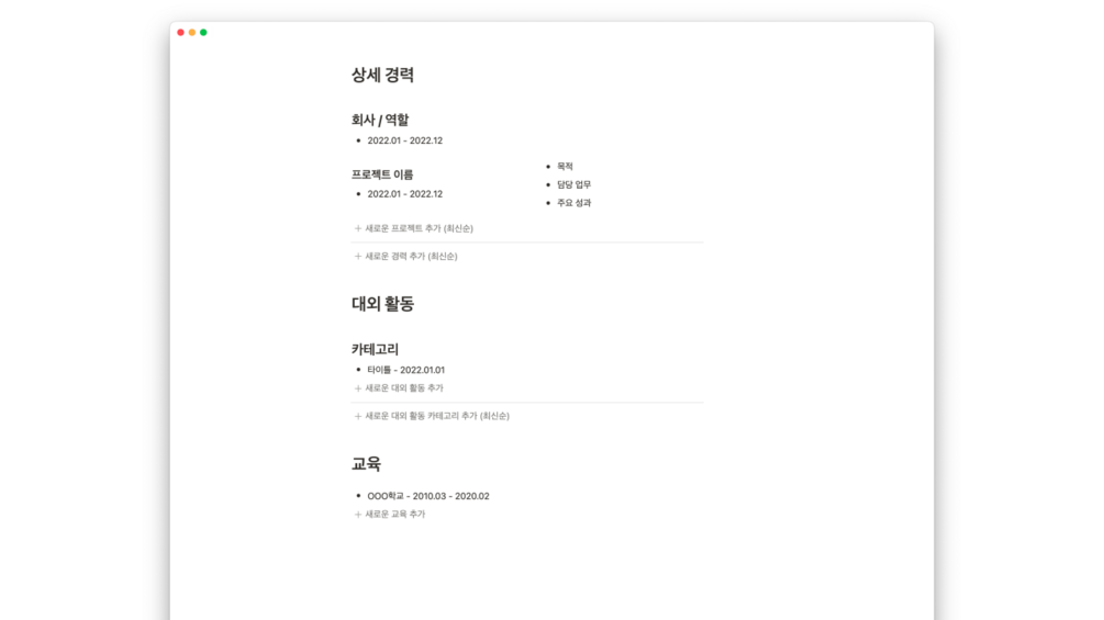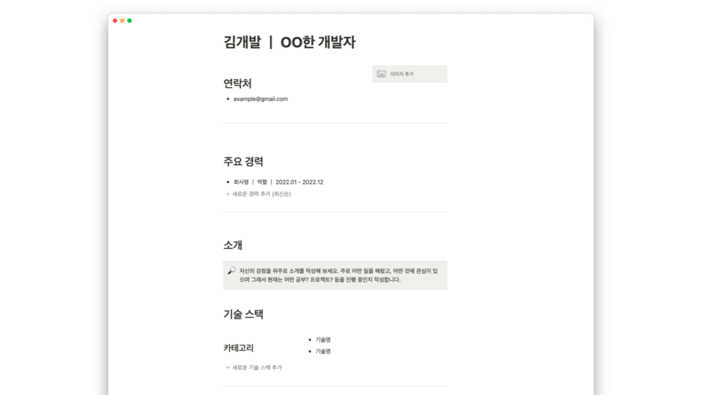 경력직 개발자를 위한 이력서 템플릿입니다.
